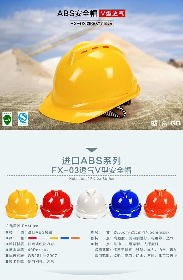 产品名称:飞讯FX-03透气V型ABS安全帽