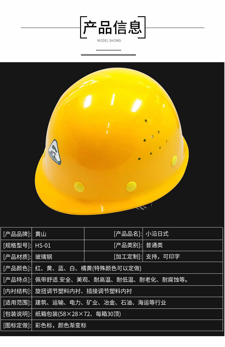 产品名称:黄山HS-01日式带透气孔玻璃钢安全帽