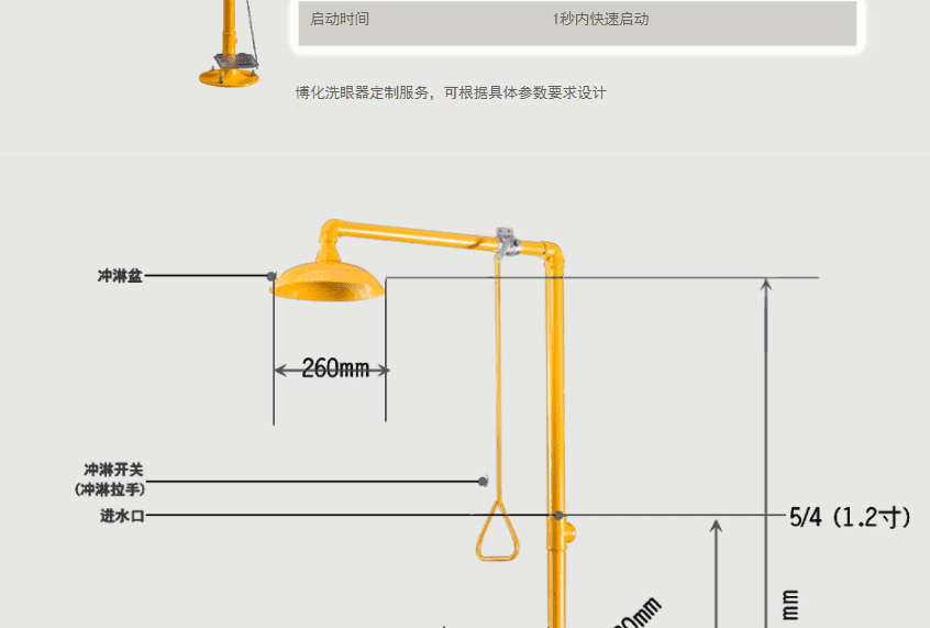 主体材质:304不锈钢+ABS防腐涂层 底 座:铝合金压铸 执行标准:美标ANSI Z 358.1-2014