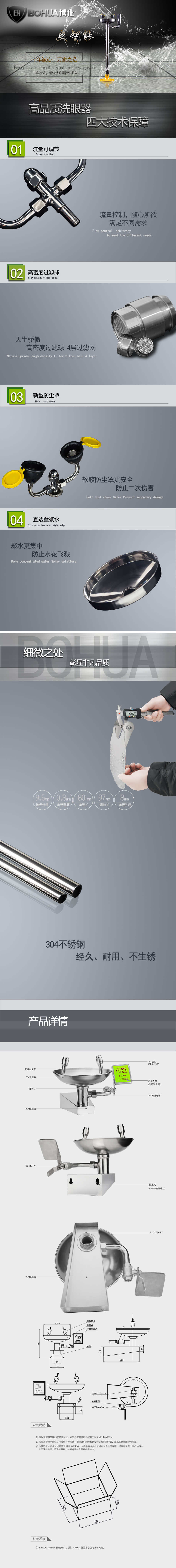 产品名称:博化BH33-1010壁挂式304不锈钢洗眼器