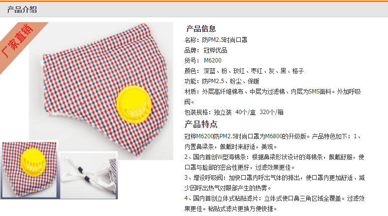 产品名称:冠桦M6200V带阀时尚防雾霾口罩