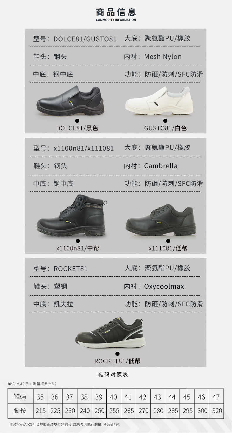 产品名称:Safety Jogger 耐磨软底防砸防刺穿安全鞋 GUSTO81