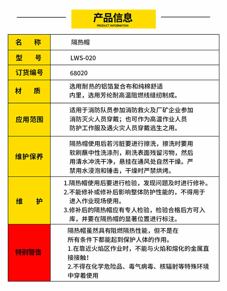 产品名称:劳卫士 LWS-020 铝箔耐高温防飞溅隔热头罩