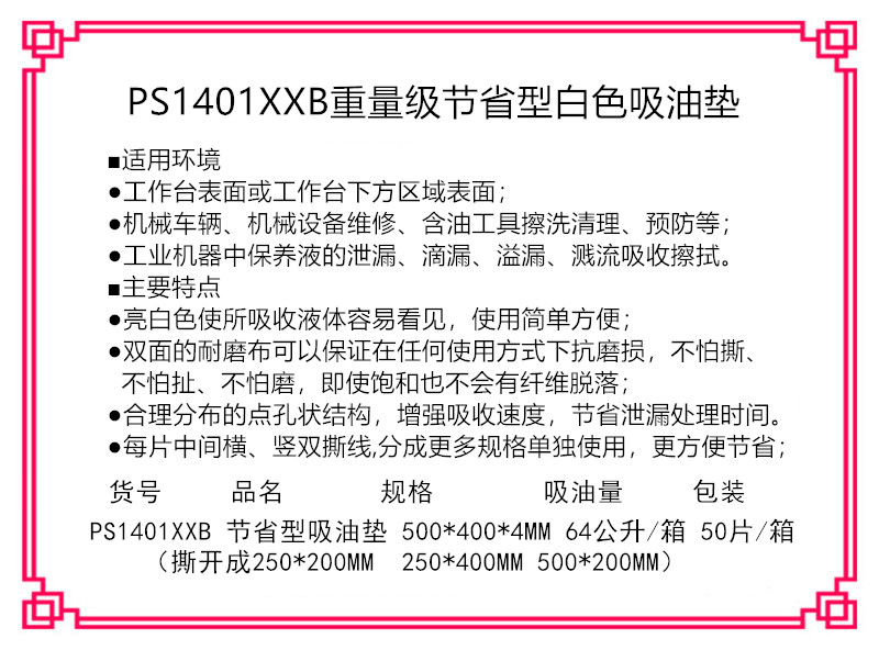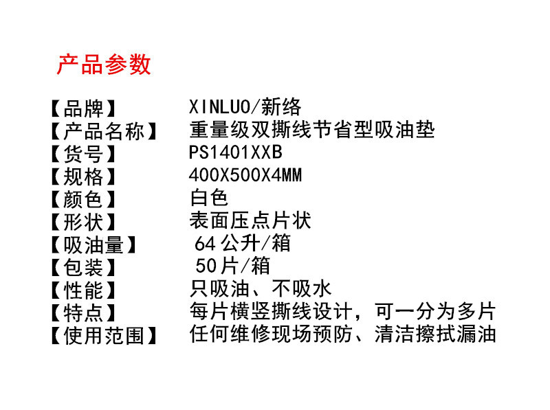 新络 PS1401XB 重量级节省型便捷耐磨吸油垫(50x40cmx4mm,50片/箱 )