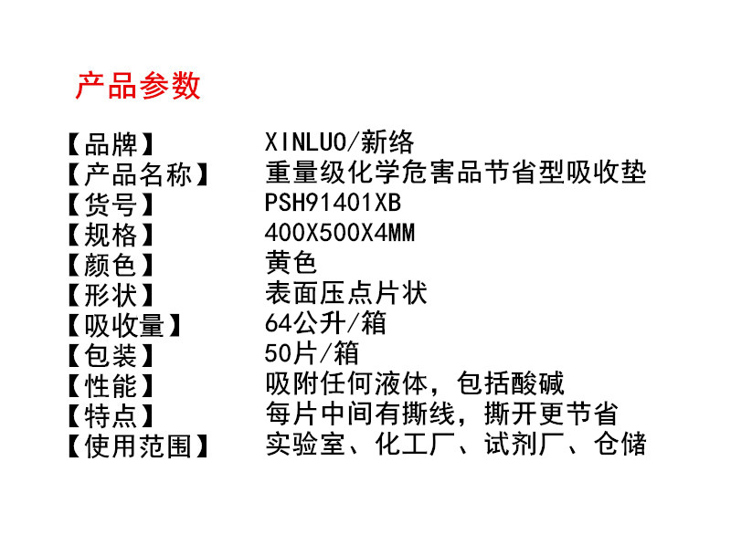 新络 CP2001X 粉色2MM厚酸性液体吸酸棉危害品万用型吸附片(48x38cmx2mm,100片/箱 )
