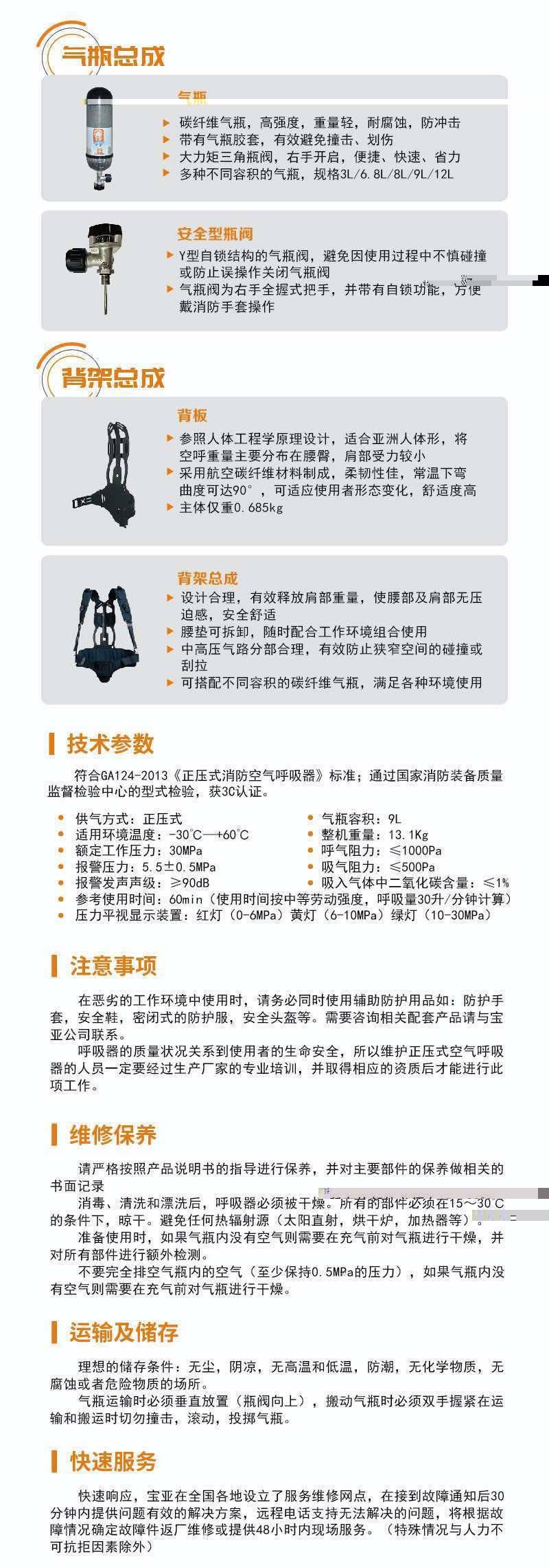 宝亚 消防指挥员空气呼吸器SDP1100(4.7L)