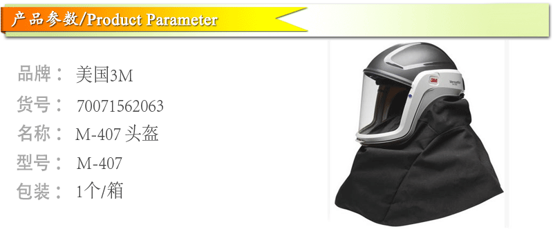 3M XA007707483 M-406 肩罩式头盔(耐用密封衬,1个/箱)