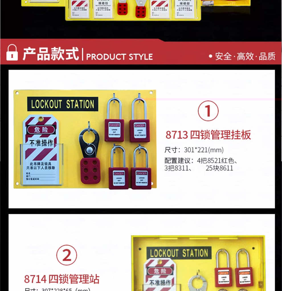 汉盾 HD-SL8714 四锁管理站 黄色 工程塑料(ABS)材质 聚碳酸酯(PC)门 外形尺寸:307mm X 228mm X 65mm(3个/箱)