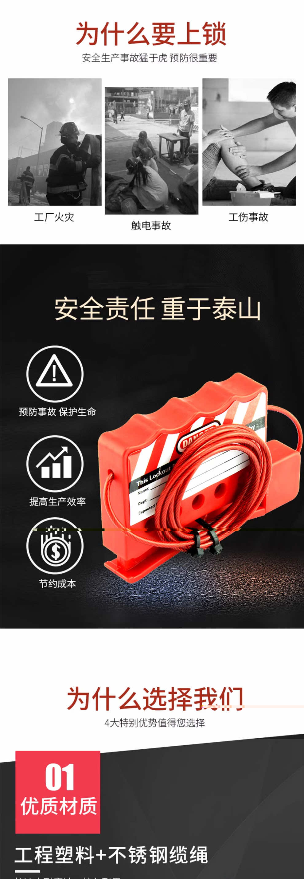 汉盾 HD-SL8237 万用阀门锁具 带可调节档臂 钢缆长度1.5m 红色(1个/盒 24个/箱)