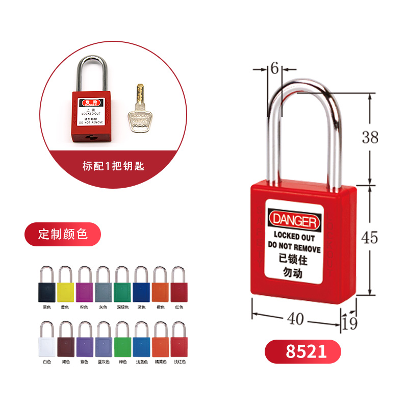 汉盾 HD-SL8312 六联搭扣式锁具 钳口1.5寸 钢钳口 聚丙烯PP注塑手柄 红色(1个/盒 300个/箱)