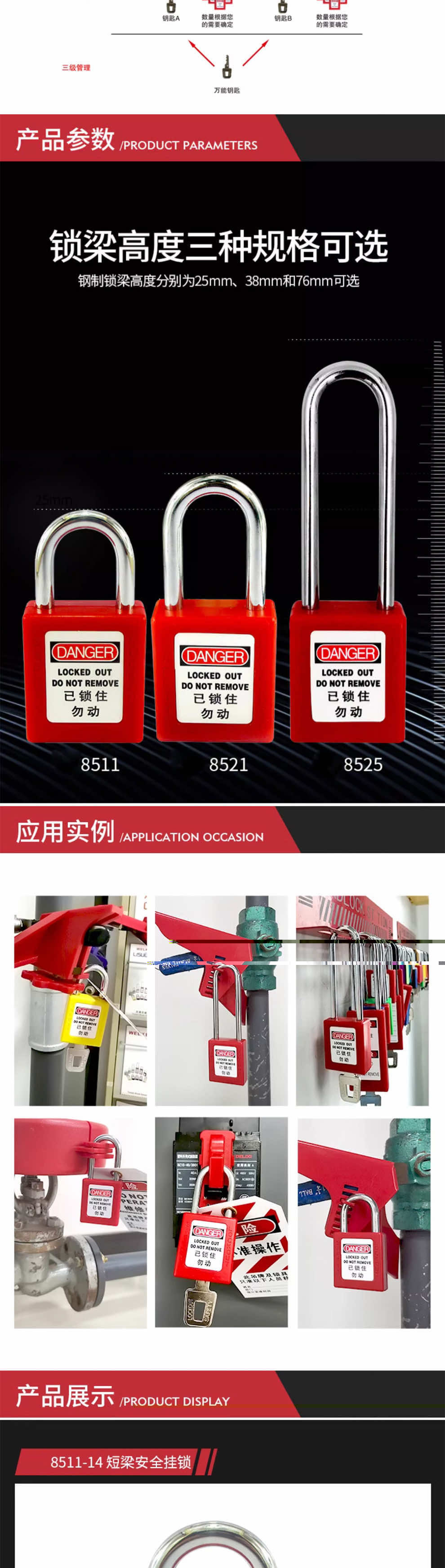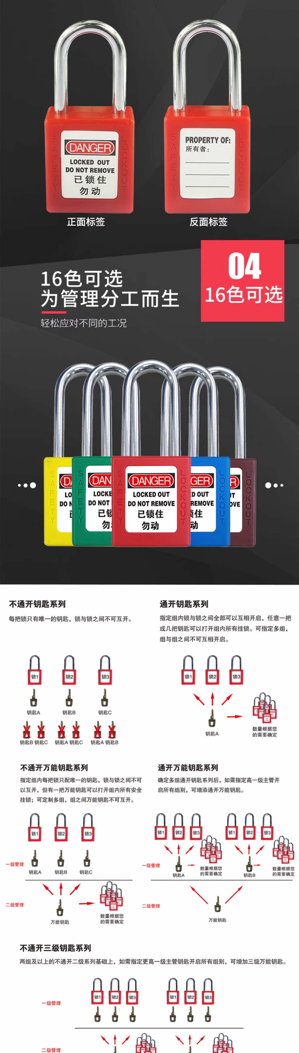汉盾 HD-SL8311 六联搭扣式锁具 钳口1寸 钢钳口 聚丙烯PP注塑手柄 红色(1个/盒 360个/箱)
