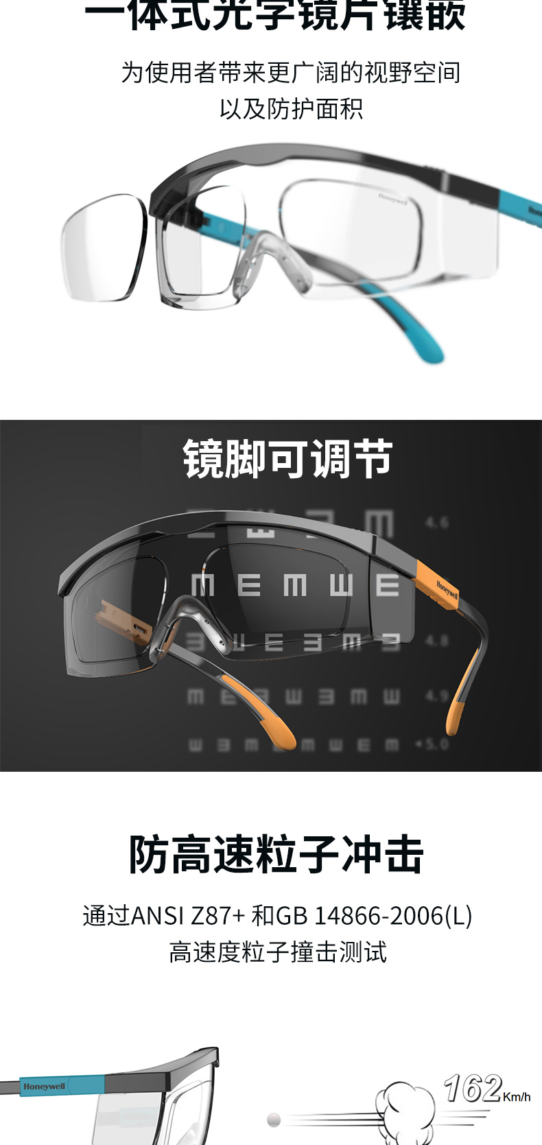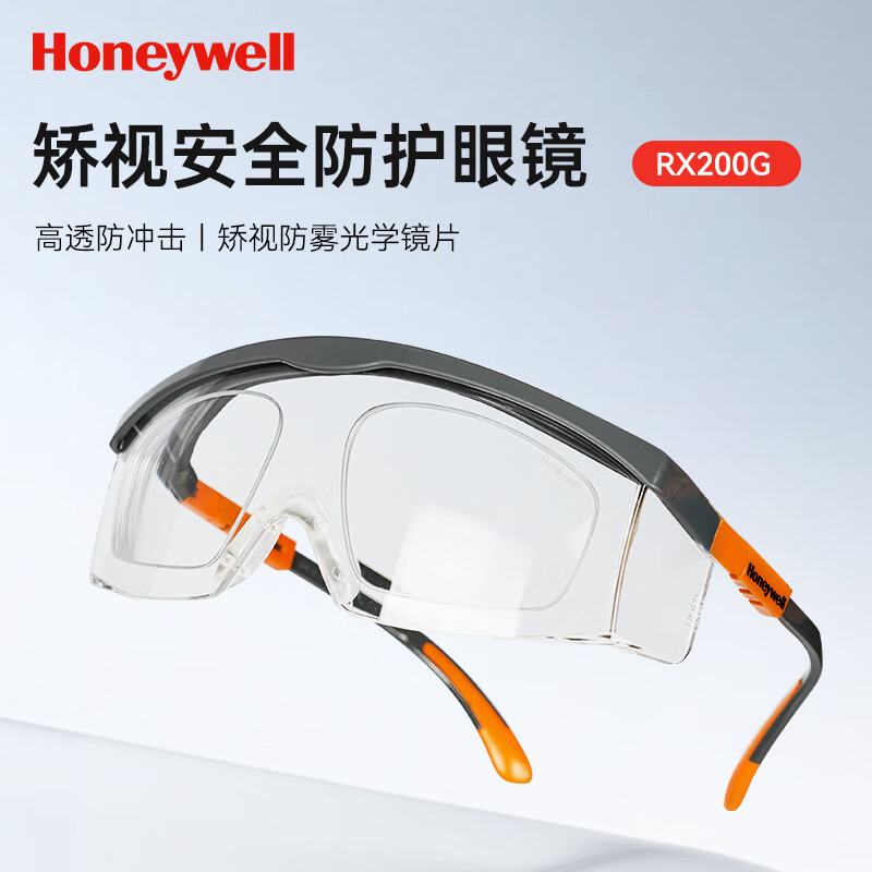 霍尼韦尔 RXF19010 RX200G透明镜片 防雾 活力橙镜框 含镜盒(光度:0~-800,散光:0~-200)