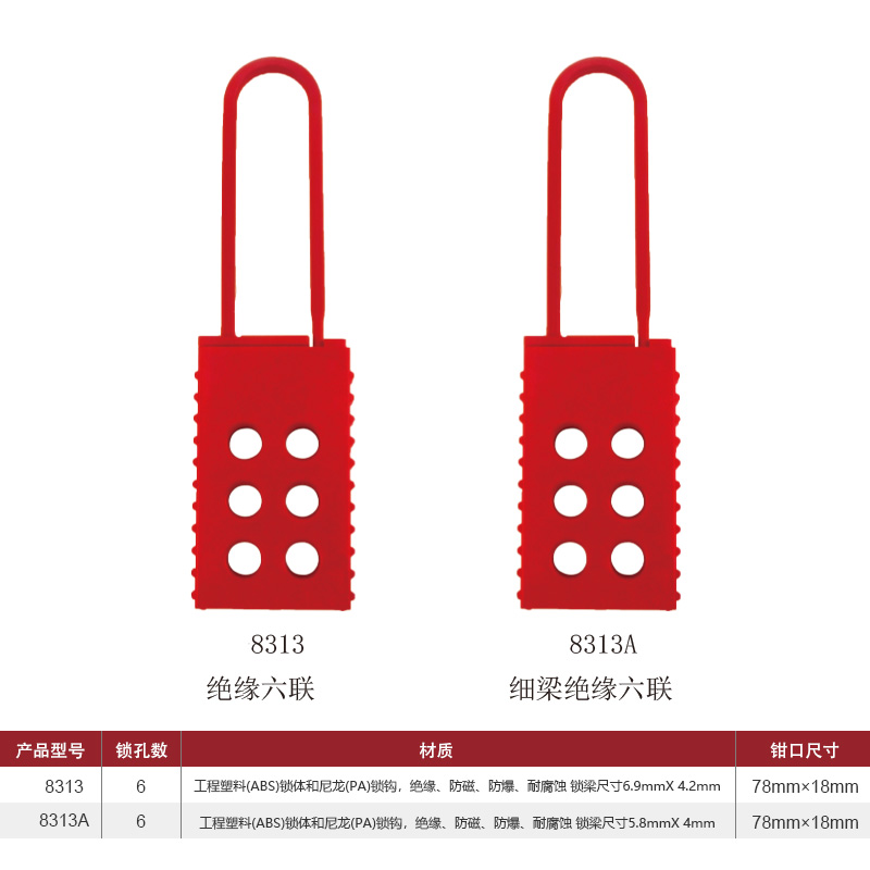 汉盾 HD-SL8313A 绝缘六联搭扣式锁具 细梁 ABS锁体 尼龙锁钩 红色(1个/盒 204个/箱)