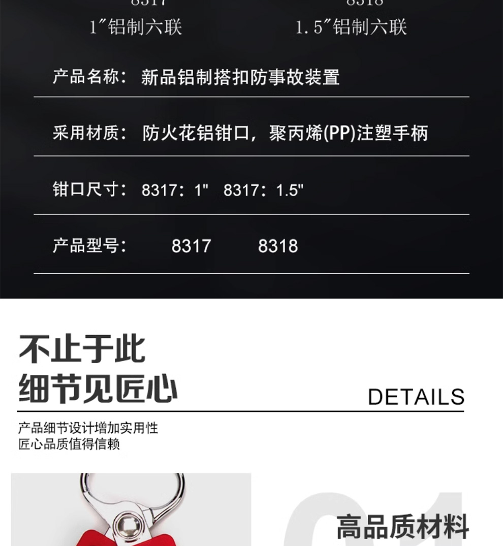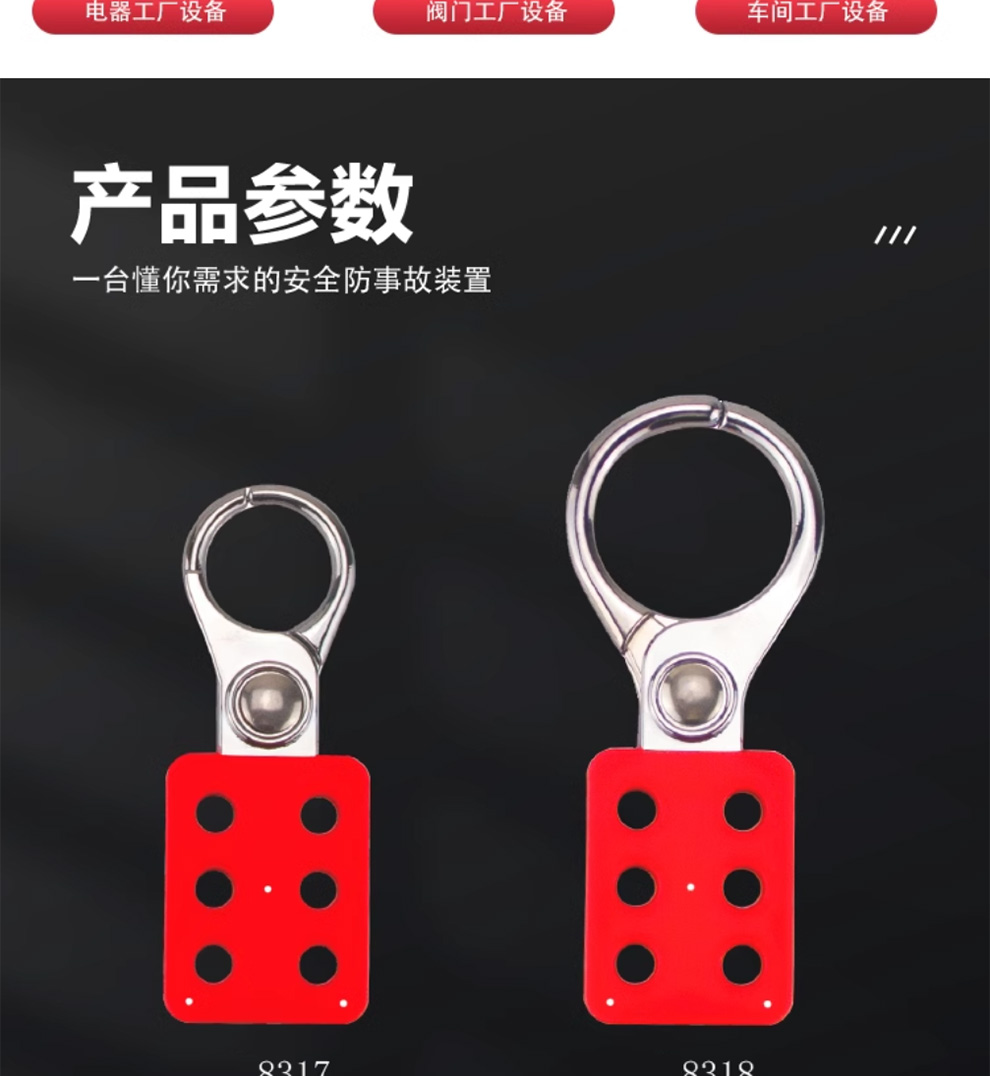 汉盾 HD-SL8312 六联搭扣式锁具 钳口1.5寸 钢钳口 聚丙烯PP注塑手柄 红色(1个/盒 300个/箱)