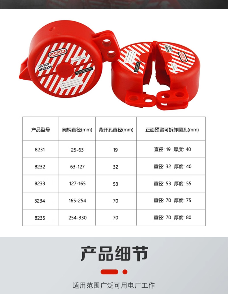 汉盾 HD-SL8237 万用阀门锁具 带可调节档臂 钢缆长度1.5m 红色(1个/盒 24个/箱)