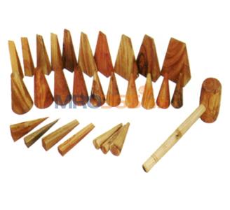 精选进口红松制作.经严格的防腐、防霉、防潮、绝缘处理,它是消防和应急救援单位常用的基本装备。 该产品由圆锥形、方楔形和棱台形三类木楔和木棰组成,规格共29种。堵漏木楔可堵漏泄漏介质温度范围≤120℃,承受泄漏介质压力≤0.4Mpa,适用于低压、低腐蚀的介质泄漏。