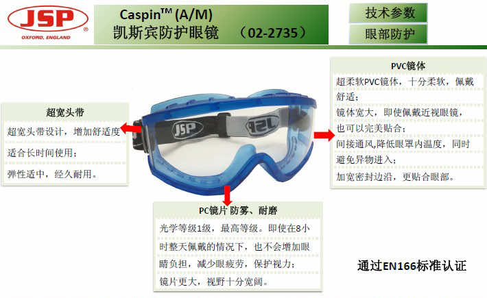 产品名称:洁适比JSP凯斯宾防雾护目镜
