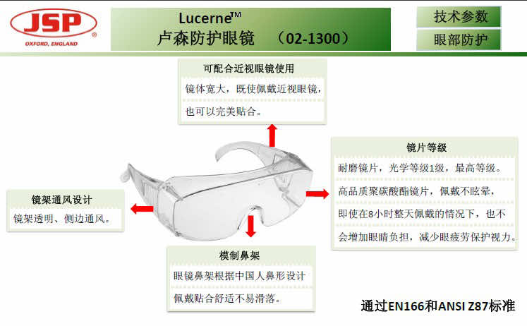 产品名称:洁适比JSP卢森防护眼镜