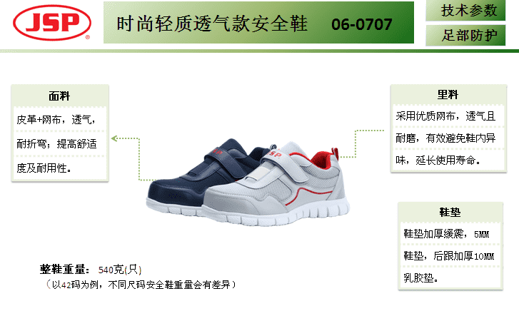 产品名称:洁适比06-0707时尚轻质透气款安全鞋