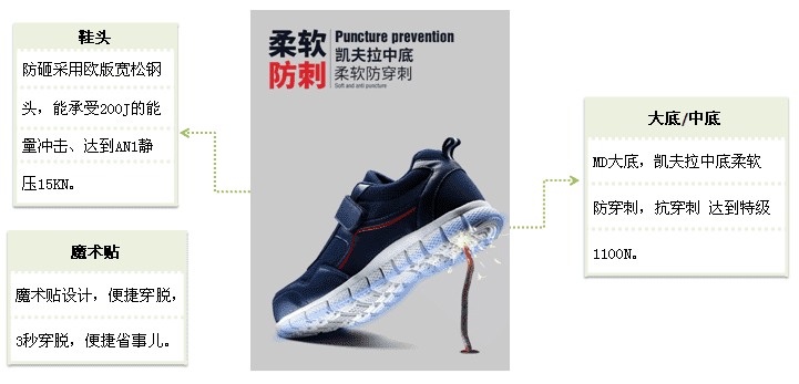 时尚透气款适合大多数的工作环境;保护足趾、防穿刺功能;