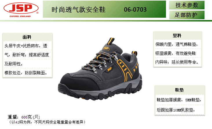 产品名称:洁适比06-0703时尚透气款安全鞋