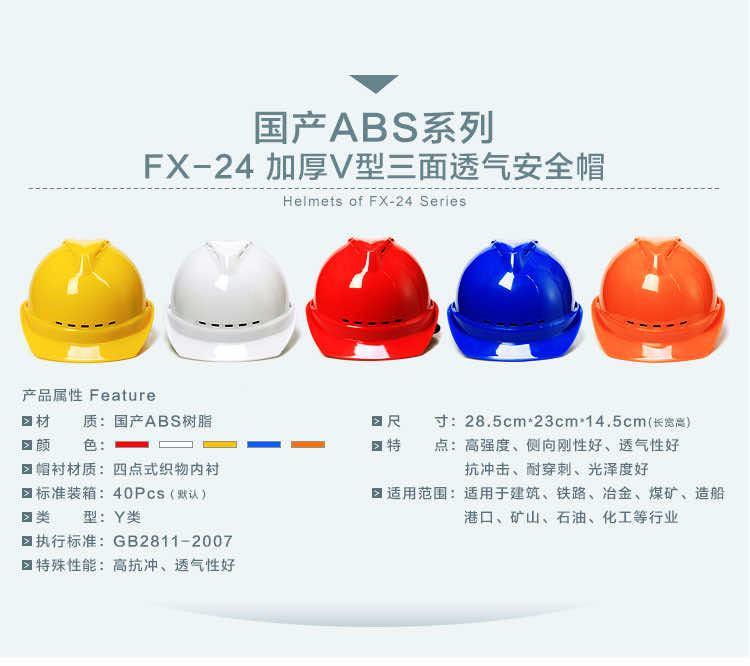 产品名称:飞讯FX-24三面透气V型国产ABS安全帽