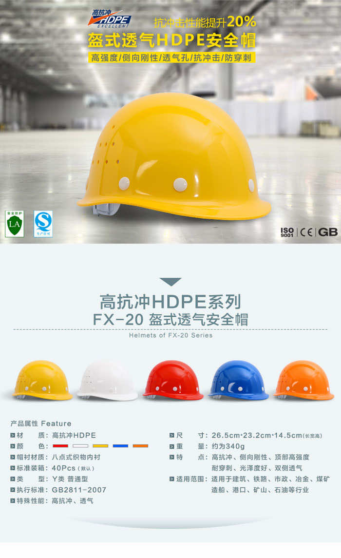 产品名称:飞讯FX-20盔式HDPE透气安全帽