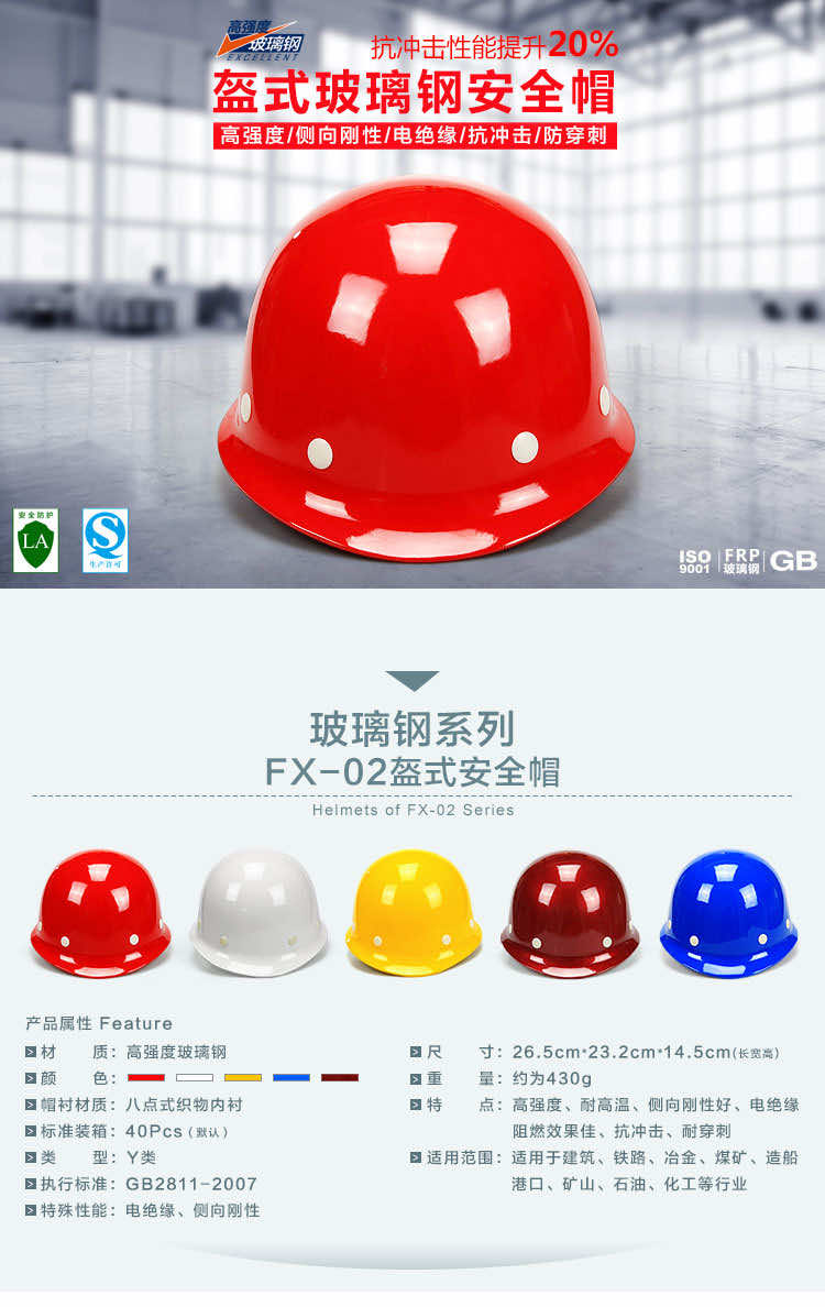 产品名称:飞讯FX-02盔式玻璃钢安全帽
