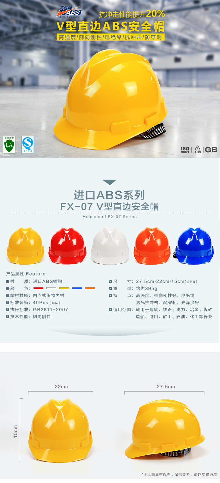产品名称:飞讯FX-07直边V型ABS安全帽