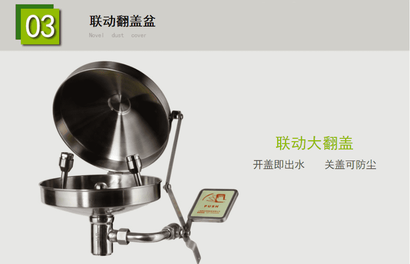 产品名称:博化BH30-2012复合式联动翻盖洗眼器