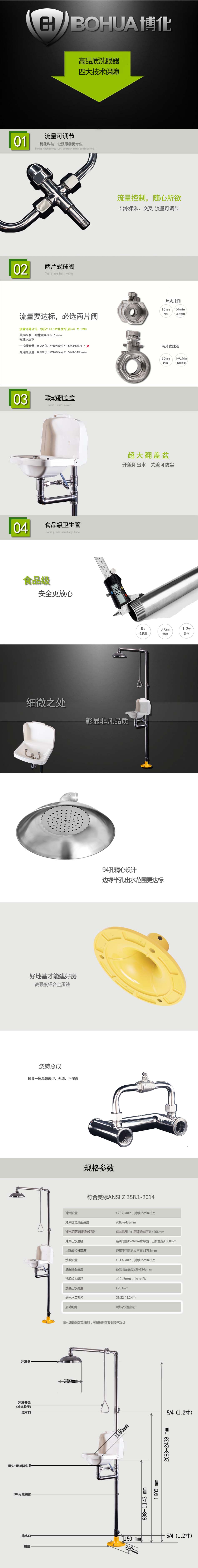 主体材质:304不锈钢 底 座:铝合金压铸 执行标准:美标ANSI Z 358.1-2014