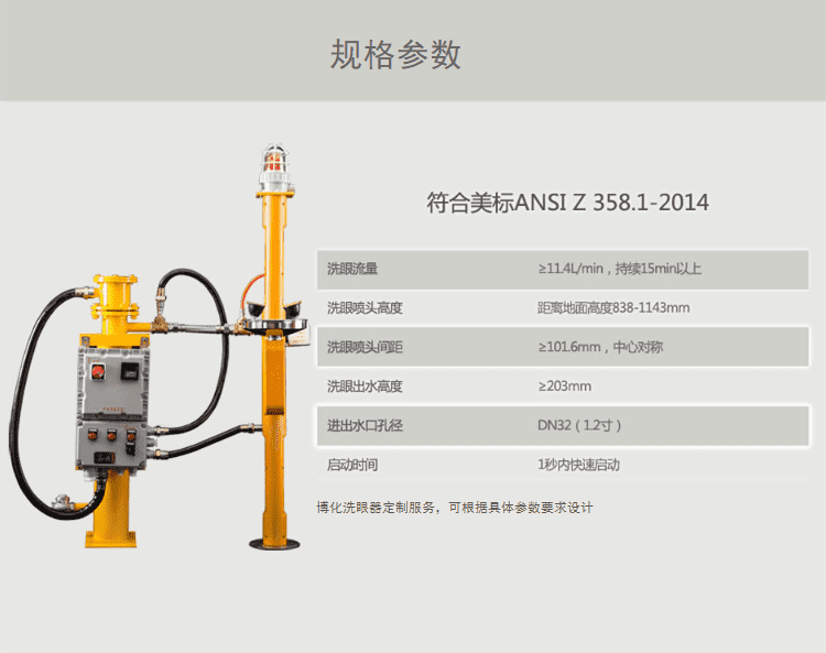 主体材质:304不锈钢 防护等级:IP65 执行标准:美标ANSI Z 358.1-2014