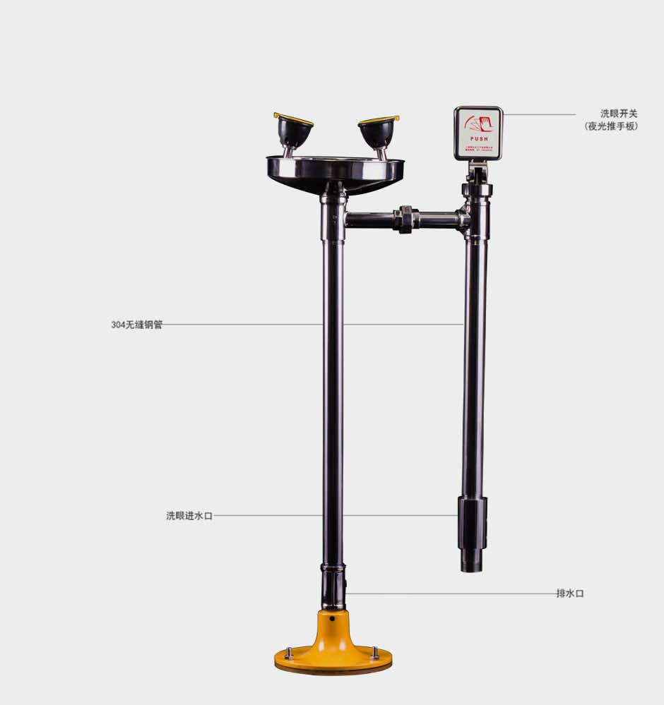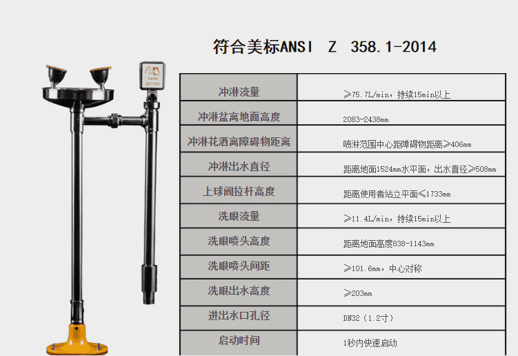主体材质:304不锈钢 底 座:铝合金压铸 执行标准:美标ANSI Z 358.1-2014