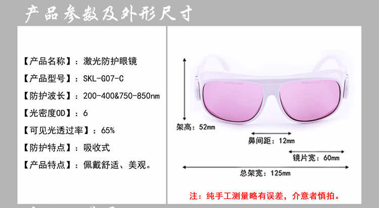 产品名称:三克SKL-G07-C吸收式激光防护眼镜