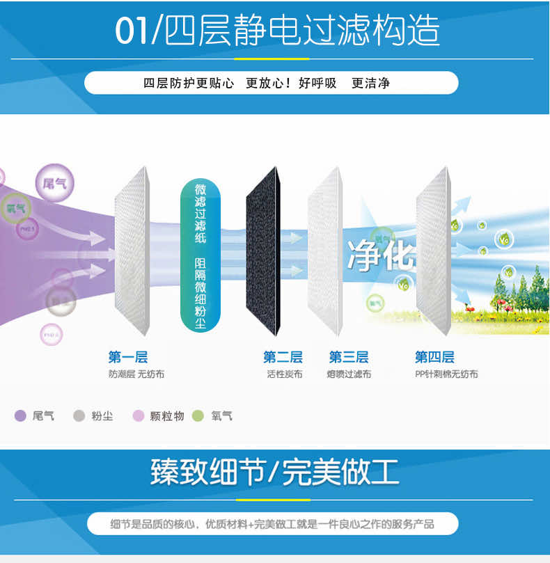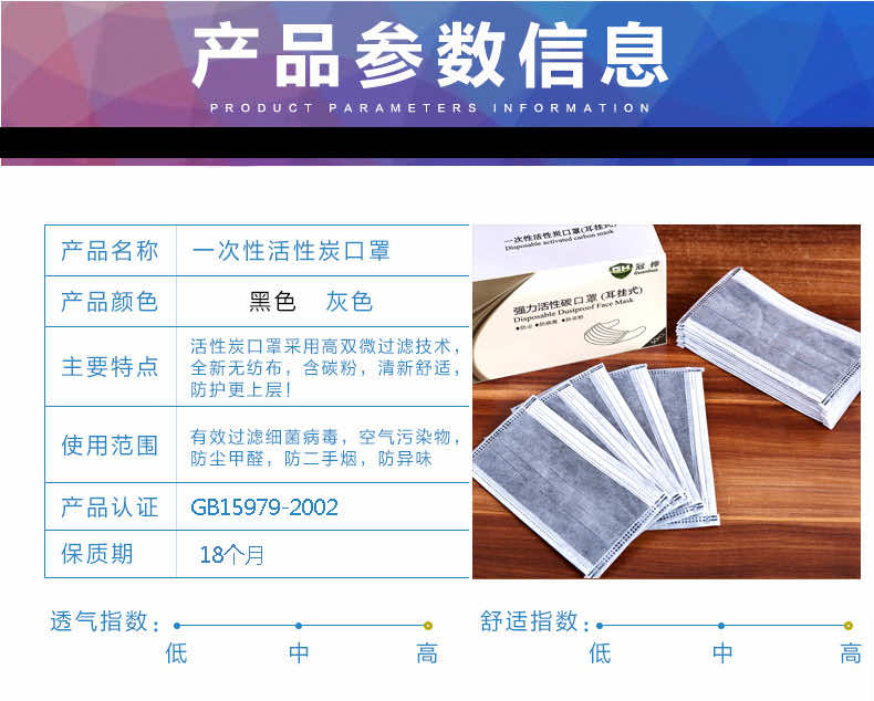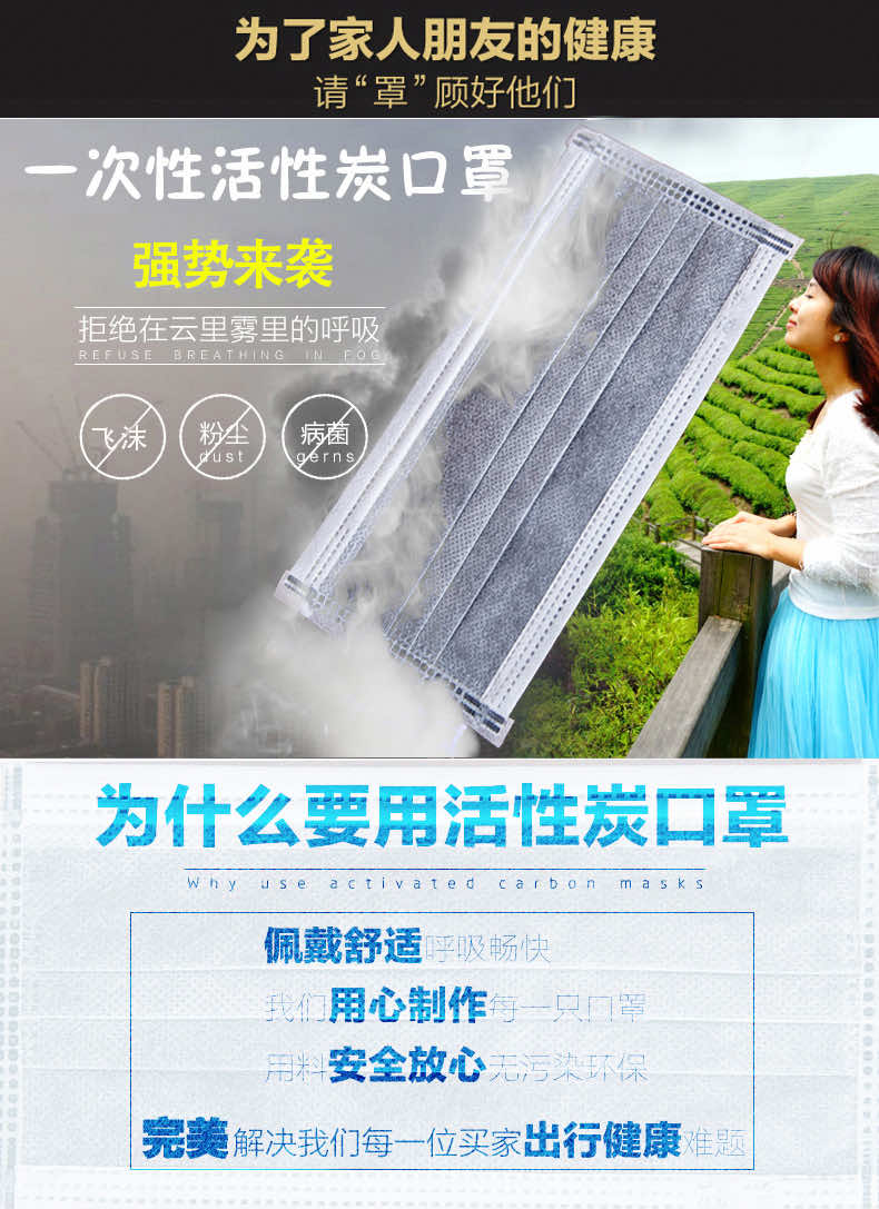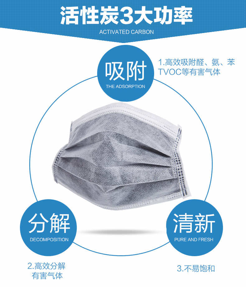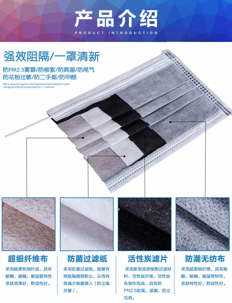 产品名称:冠桦V-2011平面活性炭防尘口罩