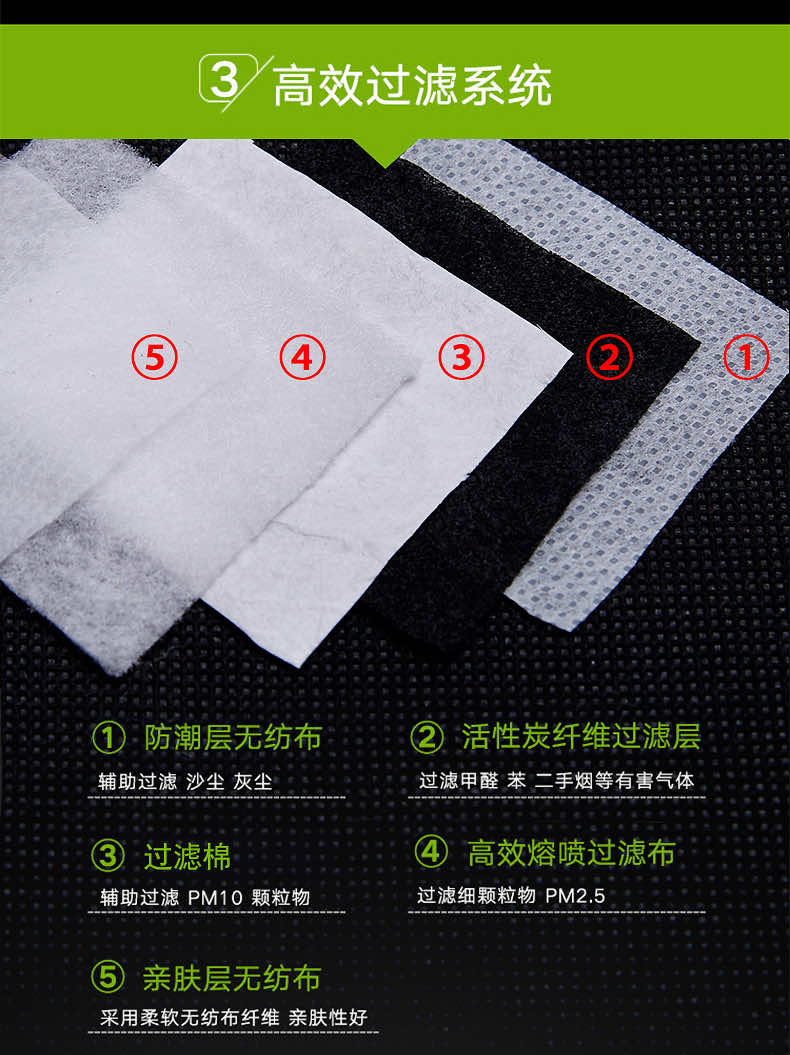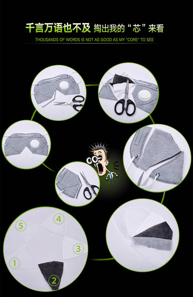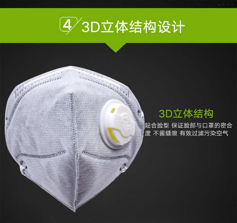 产品名称:冠桦V-5021五层活性炭带阀防尘口罩