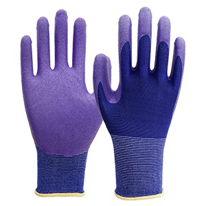 性能:耐磨、防锈耐油、防滑、透气 特色:独特的发泡磨砂处理,透气性和防滑性俱佳、全进口丁腈涂层,无异味、15针手芯、优异的耐磨性和抓握性、去除DMF技术,保护使用者健康 尺寸:7/S,8/M,9/L,10/XL 颜色:紫色 用途:运输、配送、建筑业、机械工业、汽车用品行业、石油化工等