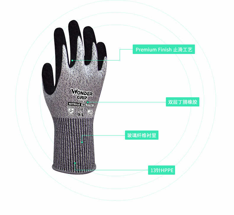 产品名称:多给力(WonderGrip)WG-777C 防割耐磨抗油防机械切割防护手套