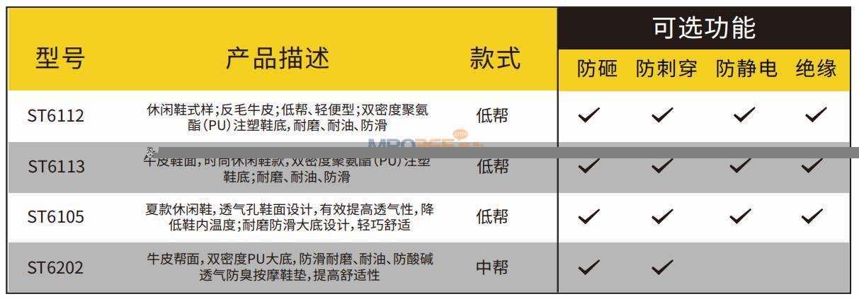 史丹利 ST6206-S1P-SIZE中帮安全鞋(大底:PU/RB,复合非金属钢头及复合鞋底,防砸,防刺穿防静电)
