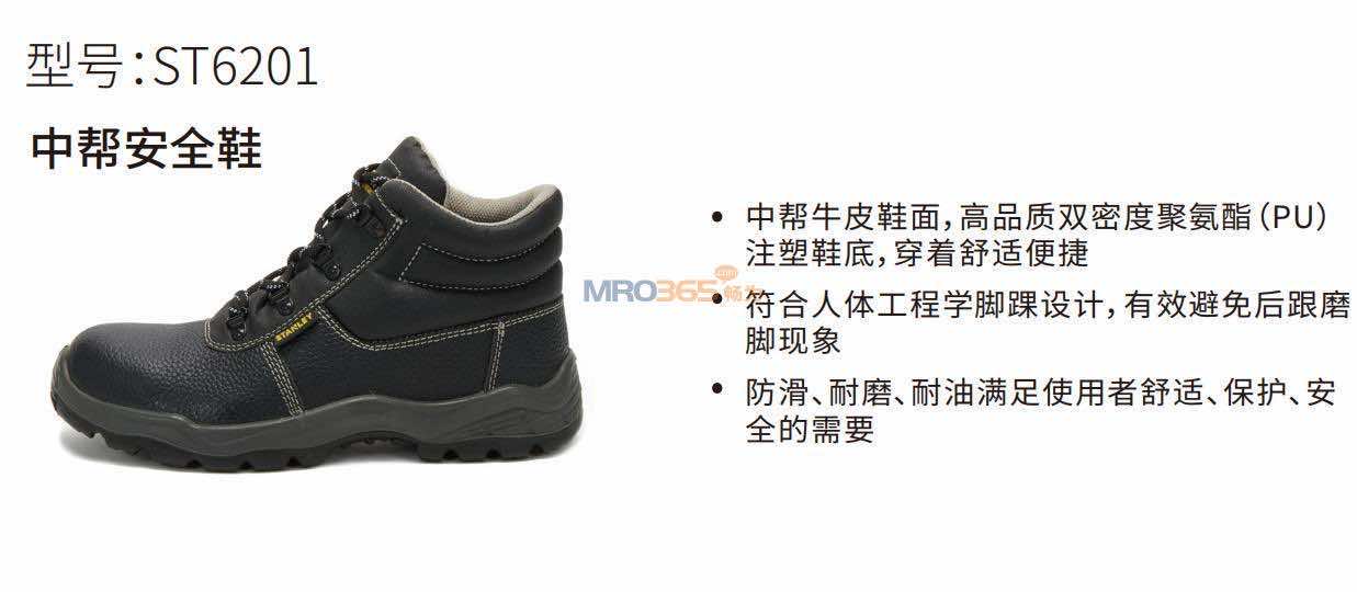 史丹利 ST6206-S1P-SIZE中帮安全鞋(大底:PU/RB,复合非金属钢头及复合鞋底,防砸,防刺穿防静电)