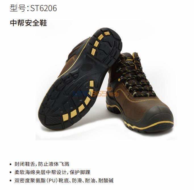史丹利 ST6205-S1P-SIZE中帮安全鞋(中帮压花牛皮,双密度PU大底;功能:S1P)