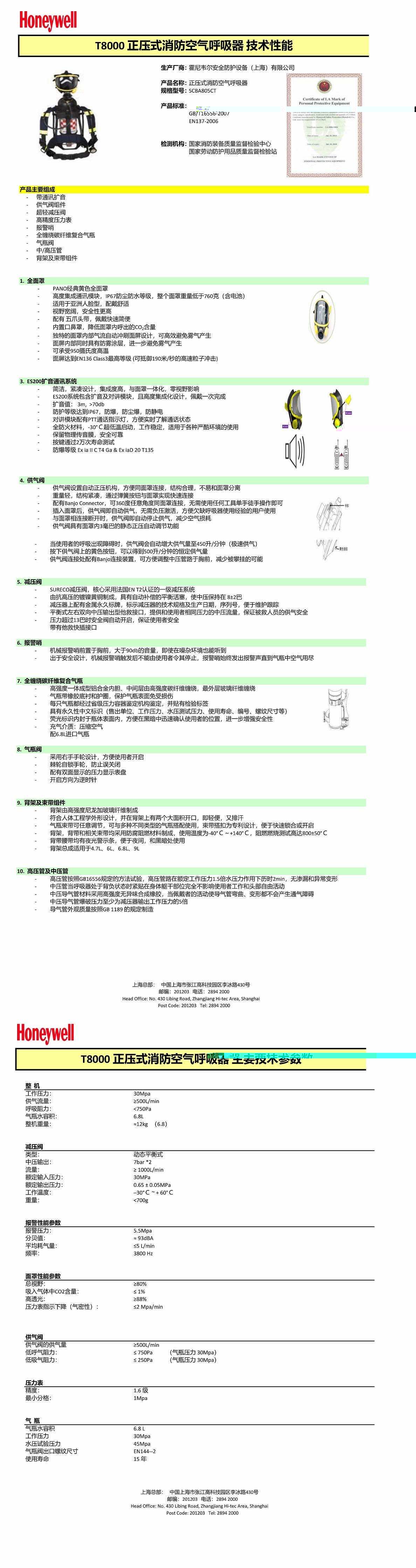 霍尼韦尔 SCBA805MCT T8000工业呼吸器(Pano头带面罩,6.8升凯博气瓶,通讯扩音)
