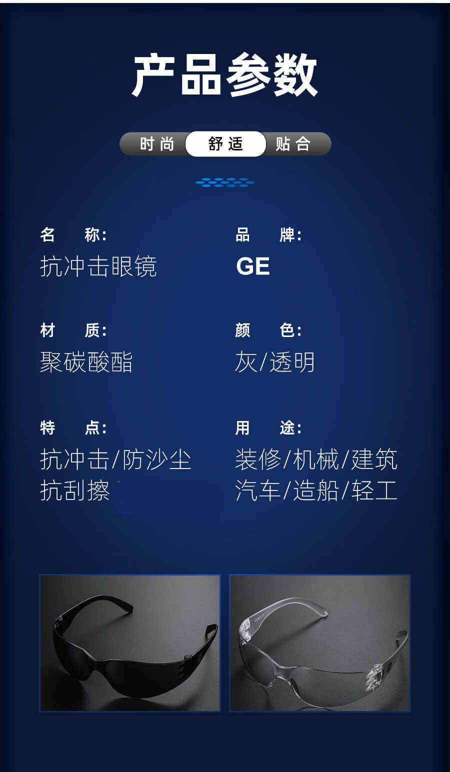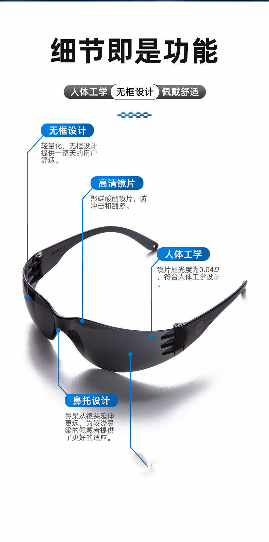 3M 10434中国款流线型耐磨防尘防冲击防雾防风眼镜