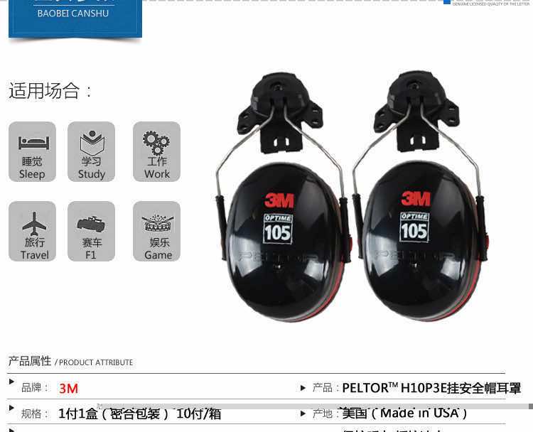 3M PELTOR H10P3E挂安全帽式工地用降噪音防噪音隔音耳罩