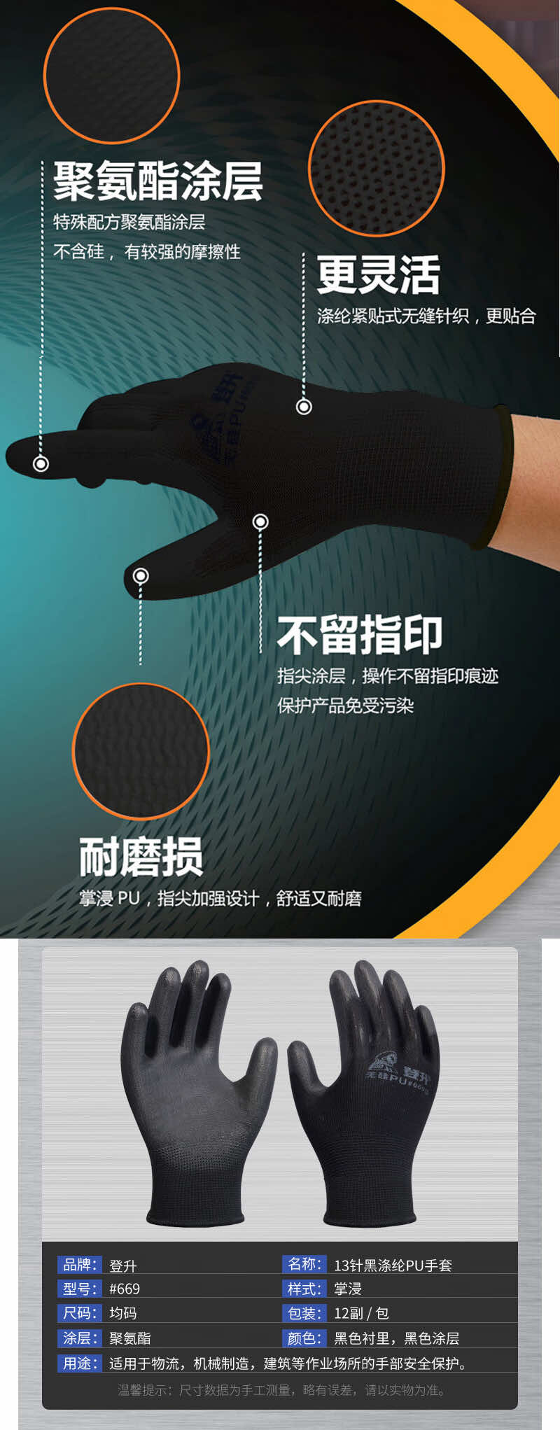 誉丰60g十针毛纺线手套/白边