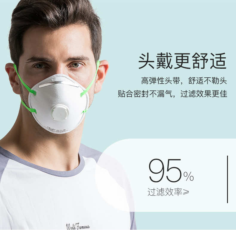 汉盾 HD9522V KN95折叠式口罩(头带式,带呼吸阀,独立装,25只/盒)