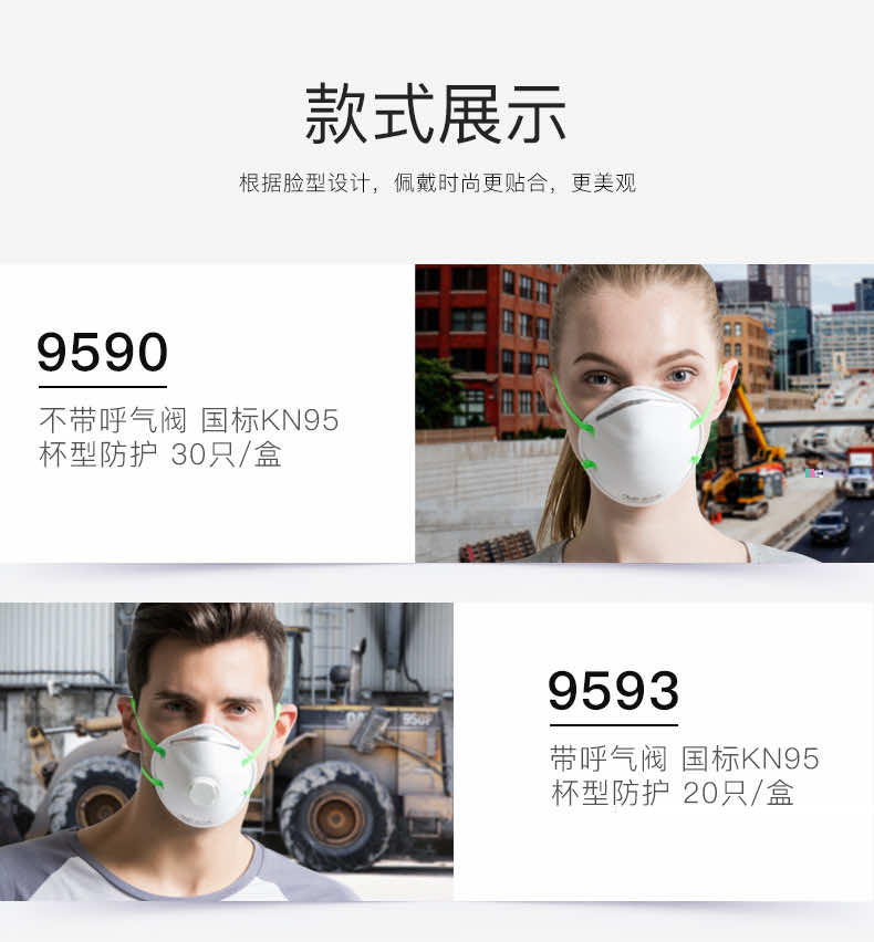 3M 9005/9006 防PM2.5雾霾口罩折叠颈戴式KN90防尘口罩
