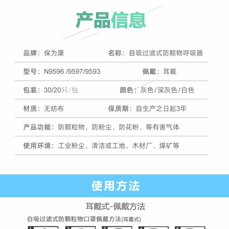 保为康9611折叠口罩/白色