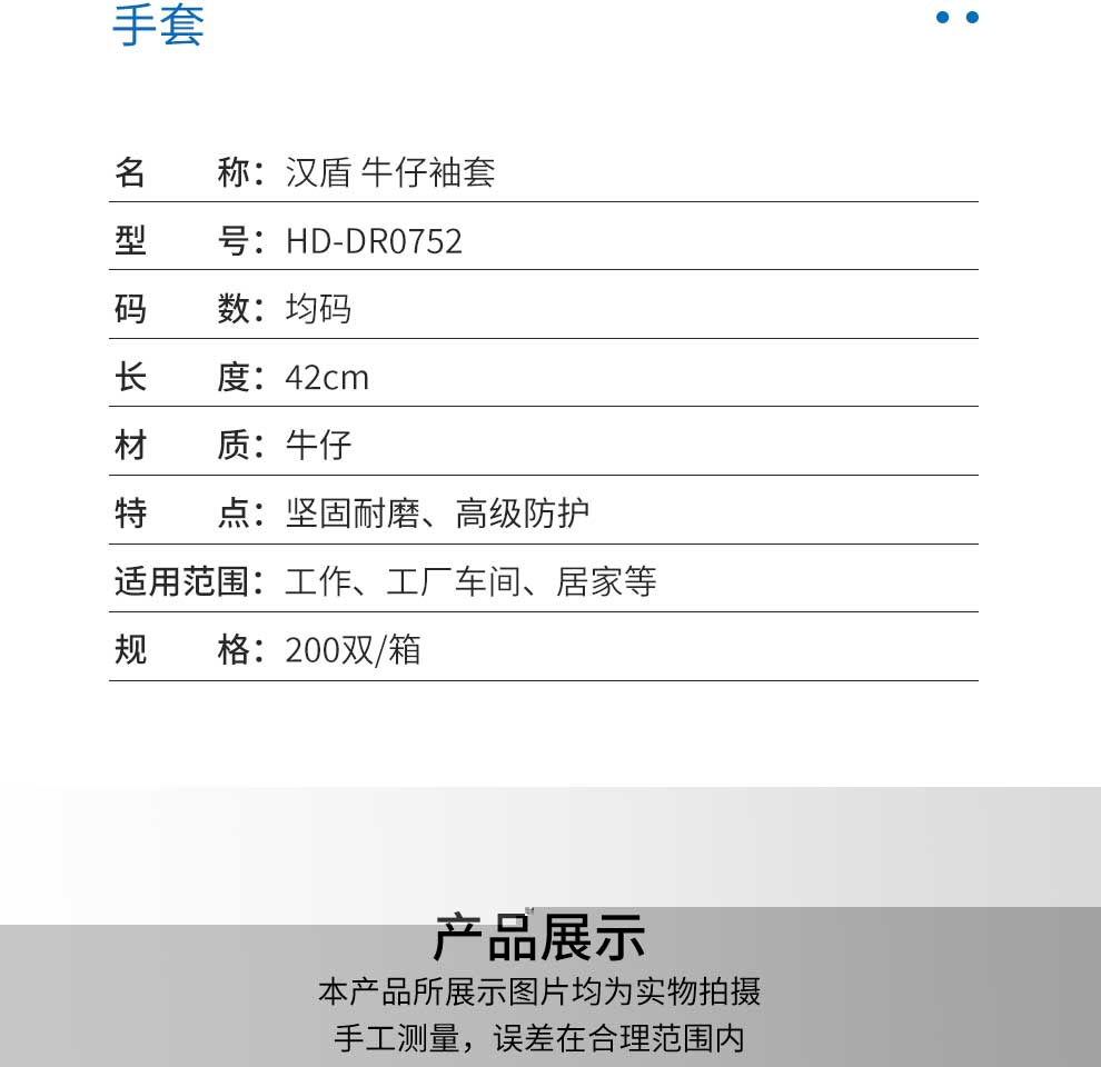 汉盾 HD-DR0752 牛仔袖套 42cm