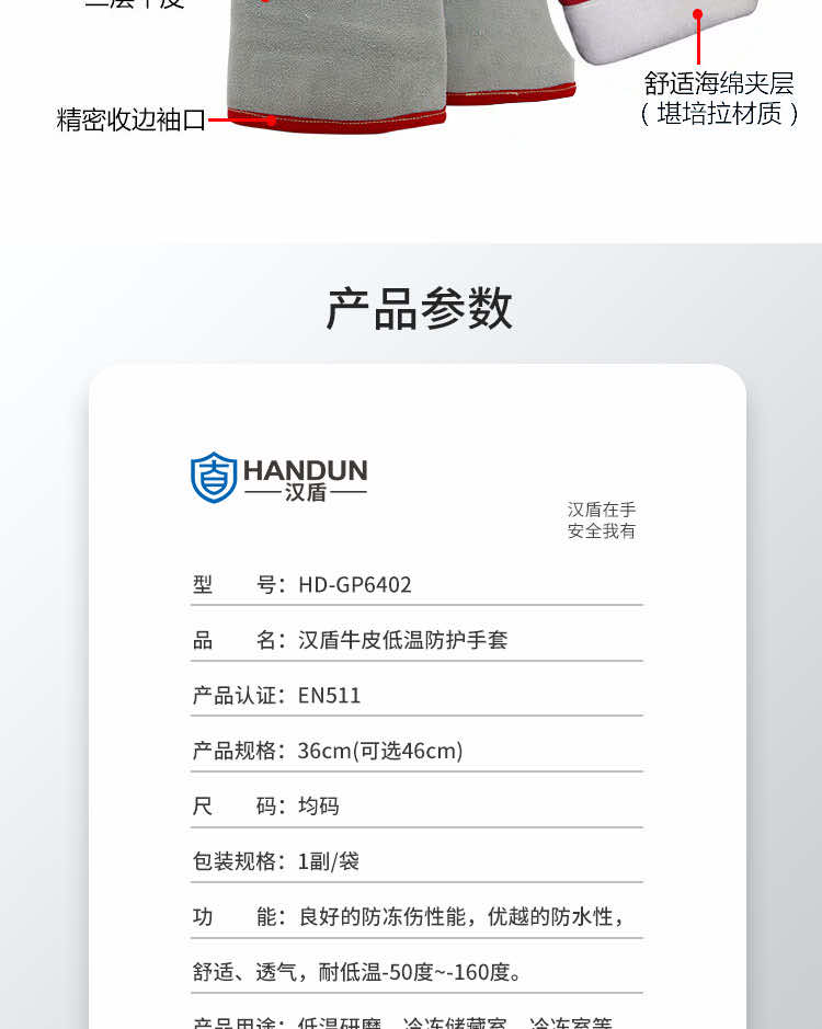 汉盾 HD-GP6401 超低温防液氮防护手套(-160度~-360度)38cm